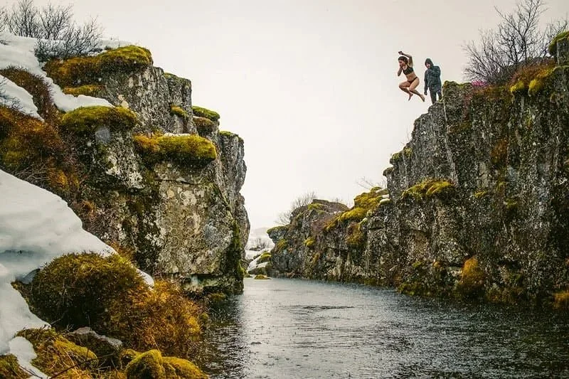 One of the most intense parts of the retreat is cold plunging in wild nature. There’s a hidden river near a small waterfall, tucked deep in the Icelandic countryside. The water is crystal clear—and brutally cold.